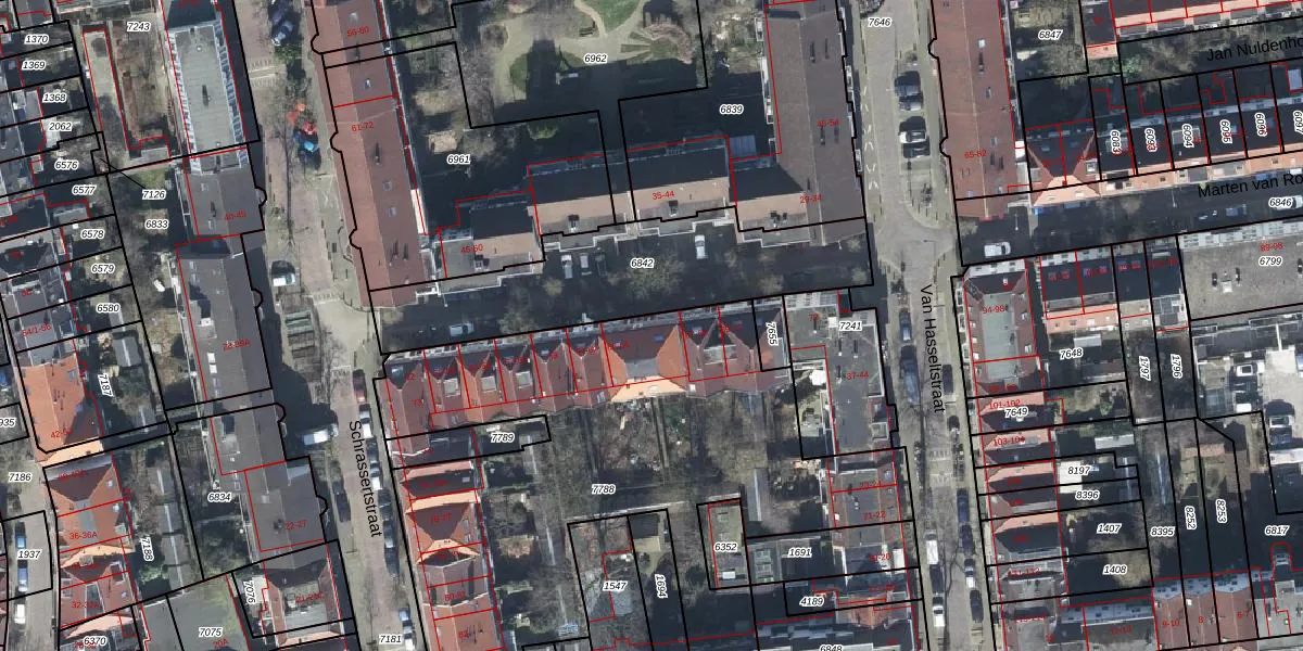 Het perceel waarop Marten van Rossemstraat 65 staat heeft een oppervlakte van 2856 m². Dit is een zeer groot perceel. De perceeloppervlakte wordt geregistreerd door het Kadaster. Gedetailleerde informatie over de maten van dit perceel kunt u vinden in het rapport Kadastrale kaart met maatvoering van Marten van Rossemstraat 65.