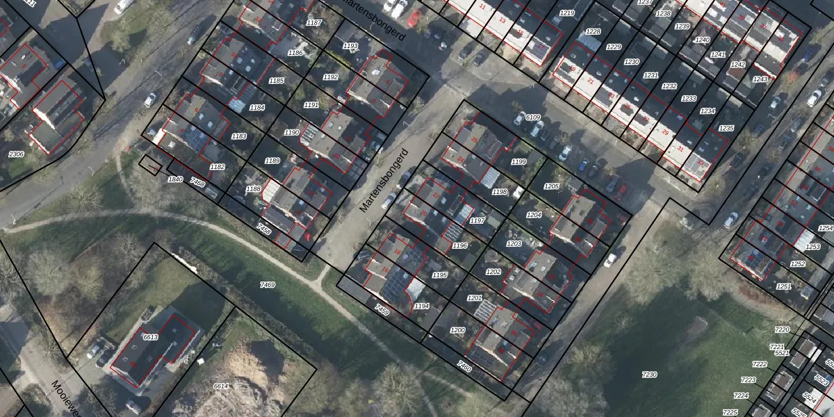 Het perceel waarop Martensbongerd 20 staat heeft een oppervlakte van 198 m². Dit is een middelgroot perceel. De perceeloppervlakte wordt geregistreerd door het Kadaster. Gedetailleerde informatie over de maten van dit perceel kunt u vinden in het rapport Kadastrale kaart met maatvoering van Martensbongerd 20.