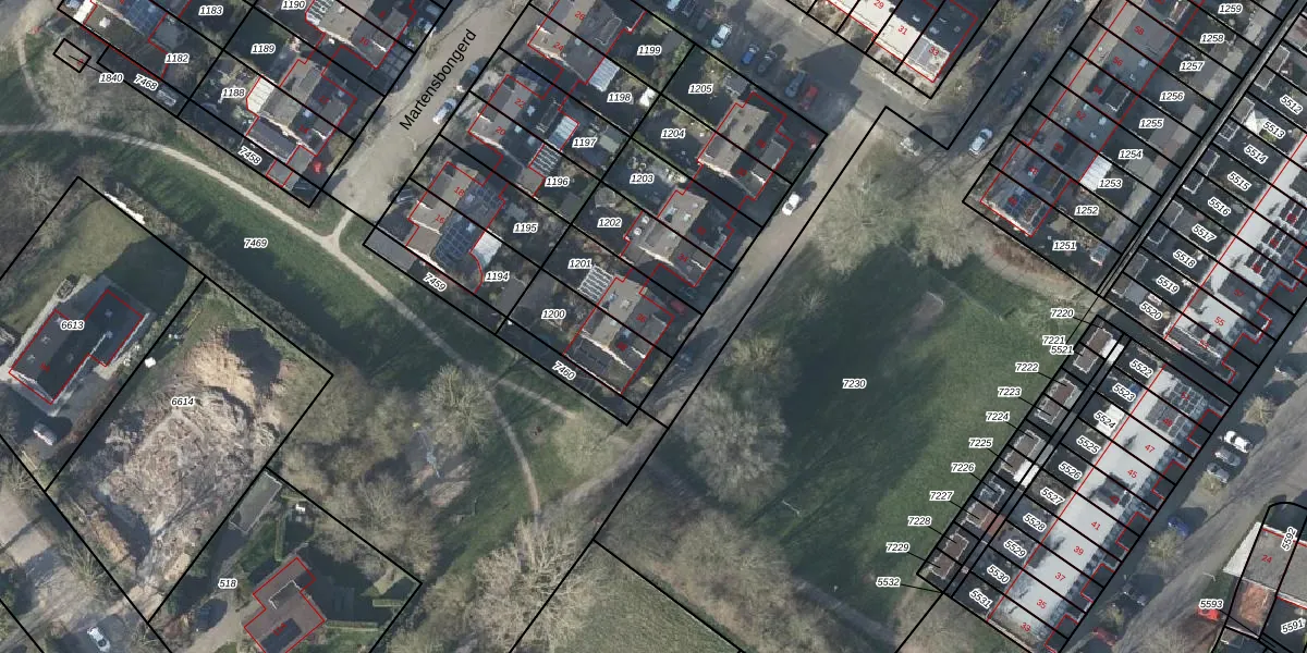 Het perceel waarop Martensbongerd 36 staat heeft een oppervlakte van 198 m². Dit is een middelgroot perceel. De perceeloppervlakte wordt geregistreerd door het Kadaster. Gedetailleerde informatie over de maten van dit perceel kunt u vinden in het rapport Kadastrale kaart met maatvoering van Martensbongerd 36.