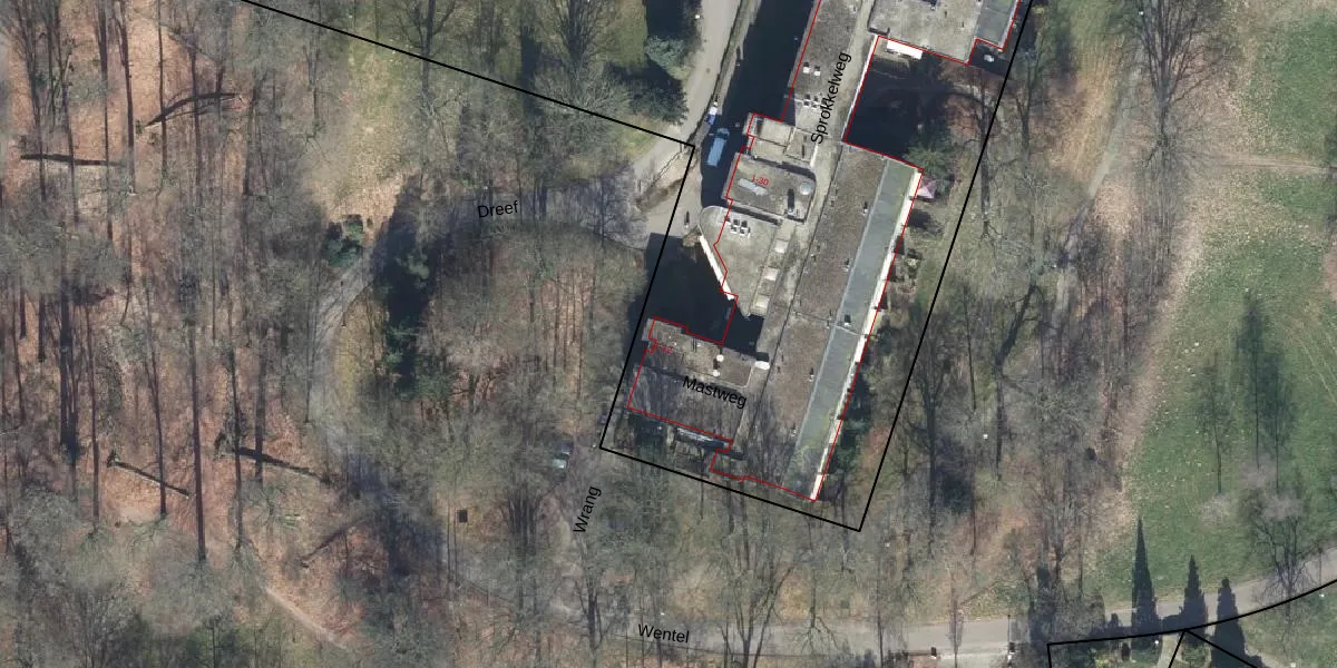 Het perceel waarop Mastweg 7 staat heeft een oppervlakte van 2,4 ha. Dit is een zeer groot perceel. De perceeloppervlakte wordt geregistreerd door het Kadaster. Gedetailleerde informatie over de maten van dit perceel kunt u vinden in het rapport Kadastrale kaart met maatvoering van Mastweg 7.