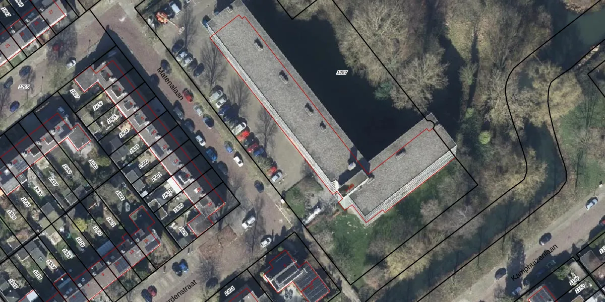 Het perceel waarop Matenalaan 1-P staat heeft een oppervlakte van 5630 m². Dit is een zeer groot perceel. De perceeloppervlakte wordt geregistreerd door het Kadaster. Gedetailleerde informatie over de maten van dit perceel kunt u vinden in het rapport Kadastrale kaart met maatvoering van Matenalaan 1-P.