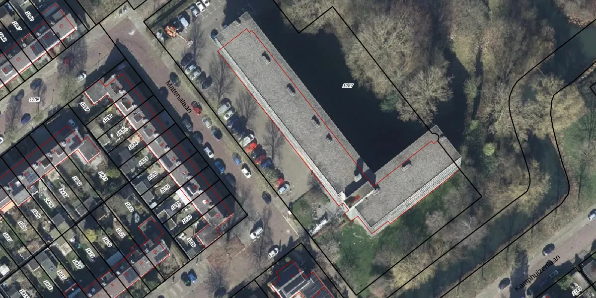 Het perceel waarop Matenalaan 1-N staat heeft een oppervlakte van 5630 m². Dit is een zeer groot perceel. De perceeloppervlakte wordt geregistreerd door het Kadaster. Gedetailleerde informatie over de maten van dit perceel kunt u vinden in het rapport Kadastrale kaart met maatvoering van Matenalaan 1-N.