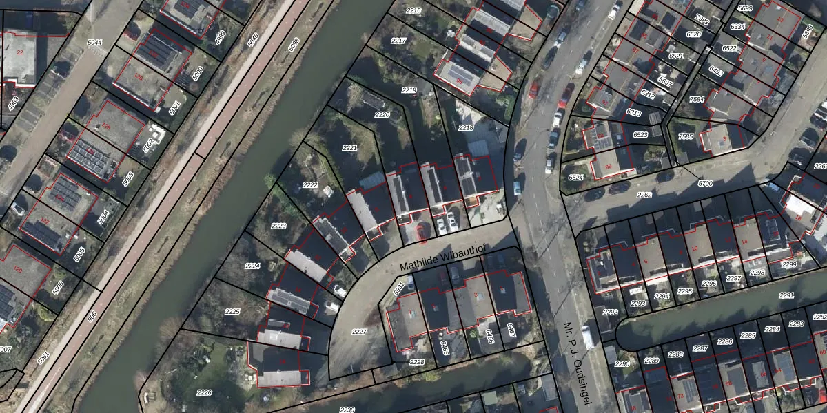 Het perceel waarop Mathilde Wibauthof 6 staat heeft een oppervlakte van 380 m². Dit is een groot perceel. De perceeloppervlakte wordt geregistreerd door het Kadaster. Gedetailleerde informatie over de maten van dit perceel kunt u vinden in het rapport Kadastrale kaart met maatvoering van Mathilde Wibauthof 6.
