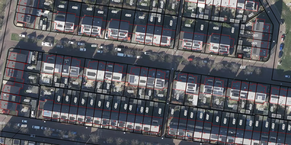 Het perceel waarop Max Euwestraat 22 staat heeft een oppervlakte van 123 m². Dit is een middelgroot perceel. De perceeloppervlakte wordt geregistreerd door het Kadaster. Gedetailleerde informatie over de maten van dit perceel kunt u vinden in het rapport Kadastrale kaart met maatvoering van Max Euwestraat 22.