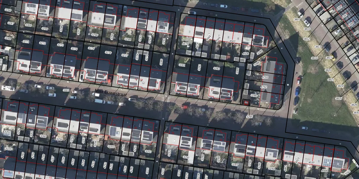 Het perceel waarop Max Euwestraat 23 staat heeft een oppervlakte van 215 m². Dit is een middelgroot perceel. De perceeloppervlakte wordt geregistreerd door het Kadaster. Gedetailleerde informatie over de maten van dit perceel kunt u vinden in het rapport Kadastrale kaart met maatvoering van Max Euwestraat 23.