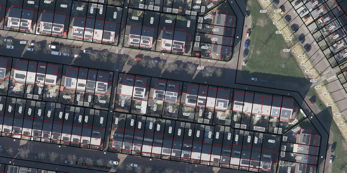 Het perceel waarop Max Euwestraat 34 staat heeft een oppervlakte van 212 m². Dit is een middelgroot perceel. De perceeloppervlakte wordt geregistreerd door het Kadaster. Gedetailleerde informatie over de maten van dit perceel kunt u vinden in het rapport Kadastrale kaart met maatvoering van Max Euwestraat 34.