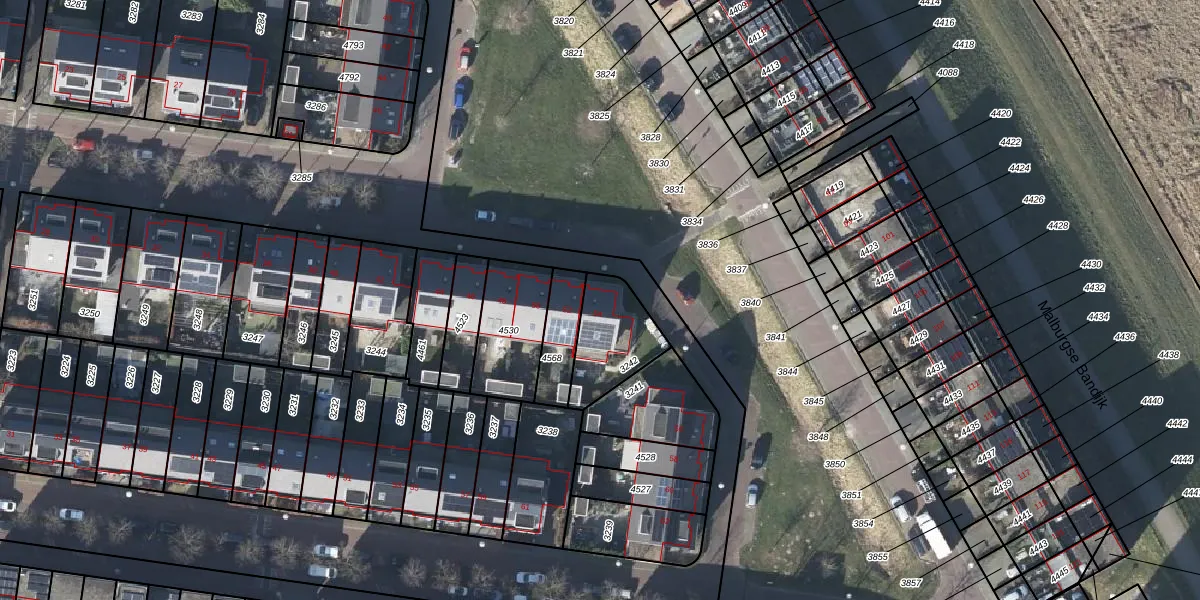 Gebruik de zoekbalk of klik op een perceel voor informatie over de adressen binnen dit perceel.