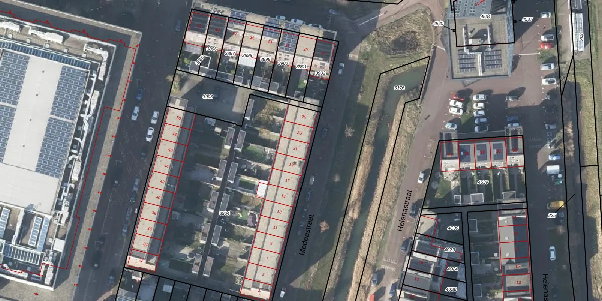 Het perceel waarop Medeastraat 21 staat heeft een oppervlakte van 3045 m². Dit is een zeer groot perceel. De perceeloppervlakte wordt geregistreerd door het Kadaster. Gedetailleerde informatie over de maten van dit perceel kunt u vinden in het rapport Kadastrale kaart met maatvoering van Medeastraat 21.