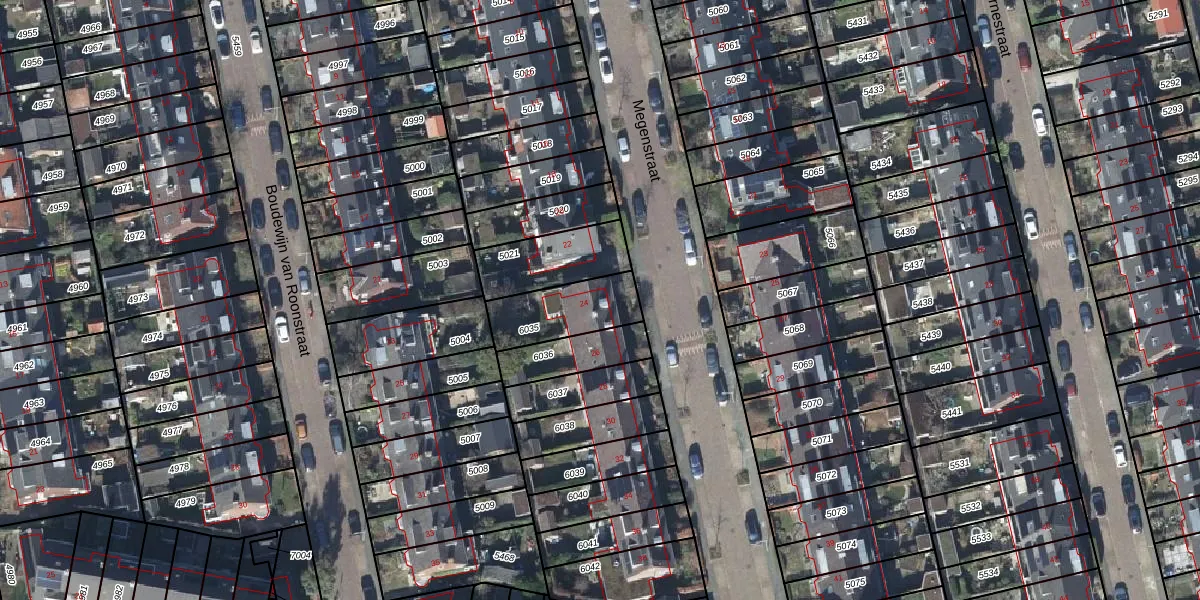 Gebruik de zoekbalk of klik op een perceel voor informatie over de adressen binnen dit perceel.