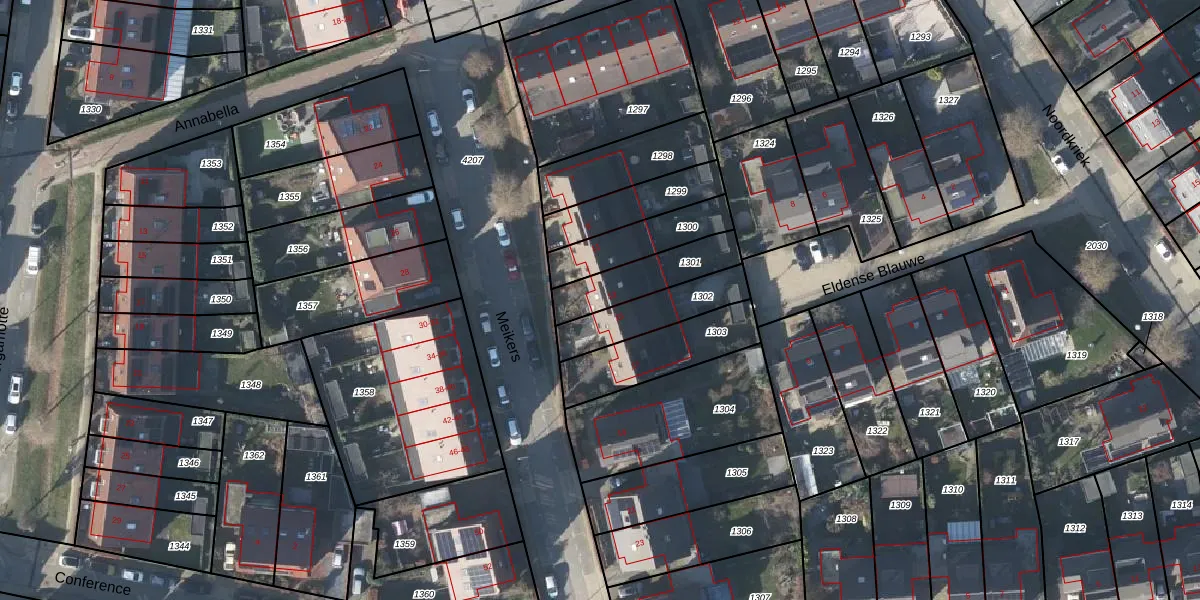 Gebruik de zoekbalk of klik op een perceel voor informatie over de adressen binnen dit perceel.