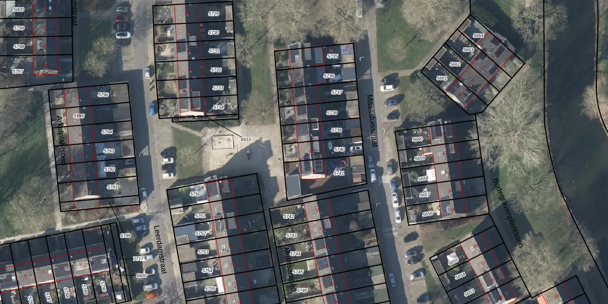 Gebruik de zoekbalk of klik op een perceel voor informatie over de adressen binnen dit perceel.