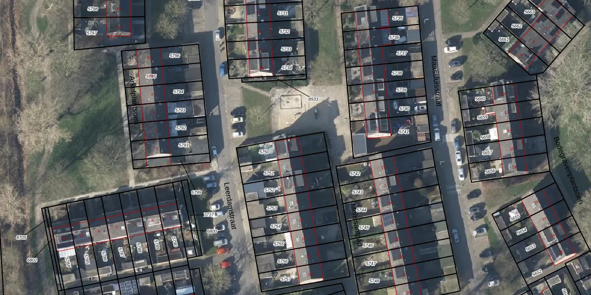 Gebruik de zoekbalk of klik op een perceel voor informatie over de adressen binnen dit perceel.