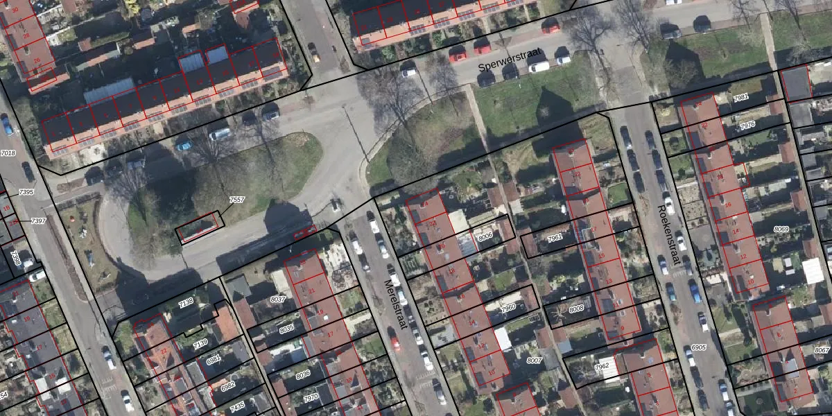 Het perceel waarop Merelstraat 24 staat heeft een oppervlakte van 3627 m². Dit is een zeer groot perceel. De perceeloppervlakte wordt geregistreerd door het Kadaster. Gedetailleerde informatie over de maten van dit perceel kunt u vinden in het rapport Kadastrale kaart met maatvoering van Merelstraat 24.