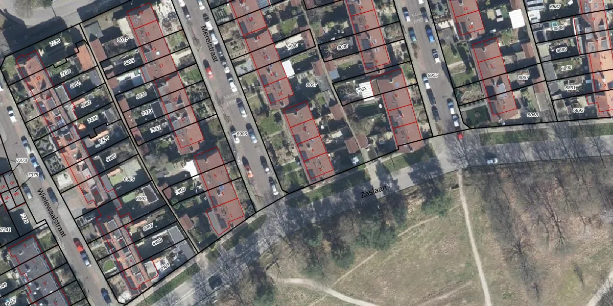 Het perceel waarop Merelstraat 4 staat heeft een oppervlakte van 3627 m². Dit is een zeer groot perceel. De perceeloppervlakte wordt geregistreerd door het Kadaster. Gedetailleerde informatie over de maten van dit perceel kunt u vinden in het rapport Kadastrale kaart met maatvoering van Merelstraat 4.