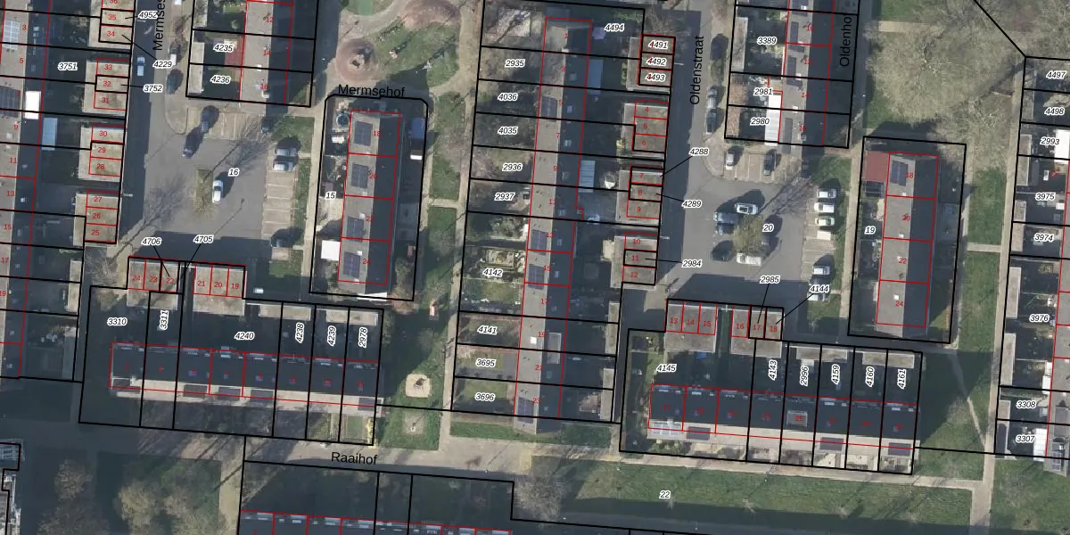 Het perceel waarop Mermsehof 15 staat heeft een oppervlakte van 608 m². Dit is een groot perceel. De perceeloppervlakte wordt geregistreerd door het Kadaster. Gedetailleerde informatie over de maten van dit perceel kunt u vinden in het rapport Kadastrale kaart met maatvoering van Mermsehof 15.
