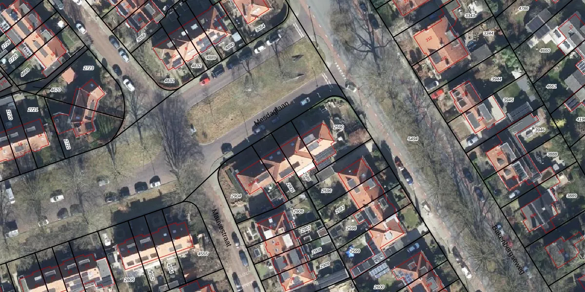 Gebruik de zoekbalk of klik op een perceel voor informatie over de adressen binnen dit perceel.