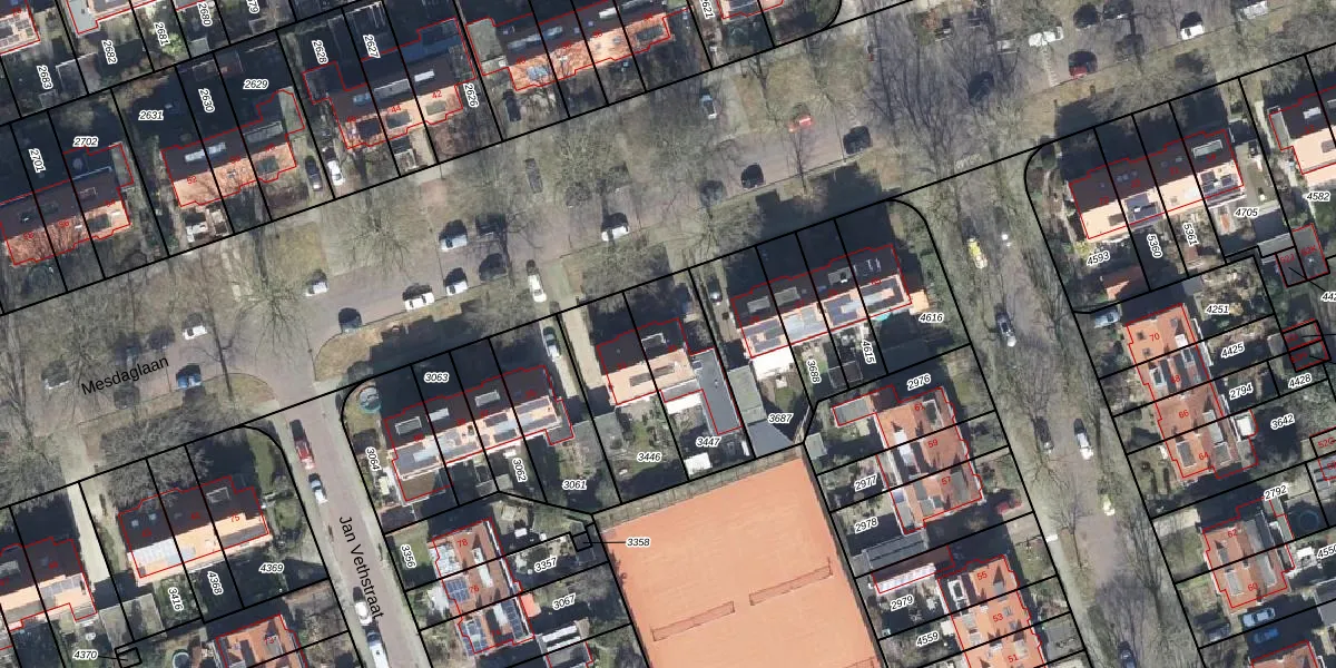 Gebruik de zoekbalk of klik op een perceel voor informatie over de adressen binnen dit perceel.