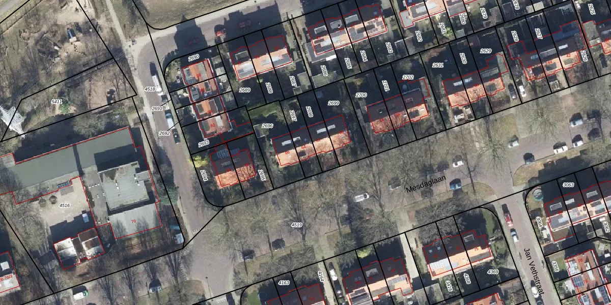 Het perceel waarop Mesdaglaan 64 staat heeft een oppervlakte van 159 m². Dit is een middelgroot perceel. De perceeloppervlakte wordt geregistreerd door het Kadaster. Gedetailleerde informatie over de maten van dit perceel kunt u vinden in het rapport Kadastrale kaart met maatvoering van Mesdaglaan 64.