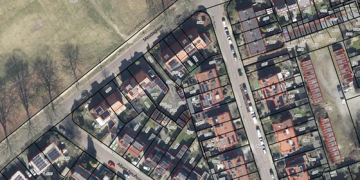 Het perceel waarop Mesdaglaan 75-G staat heeft een oppervlakte van 17 m². Dit is een klein perceel. De perceeloppervlakte wordt geregistreerd door het Kadaster. Gedetailleerde informatie over de maten van dit perceel kunt u vinden in het rapport Kadastrale kaart met maatvoering van Mesdaglaan 75-G.