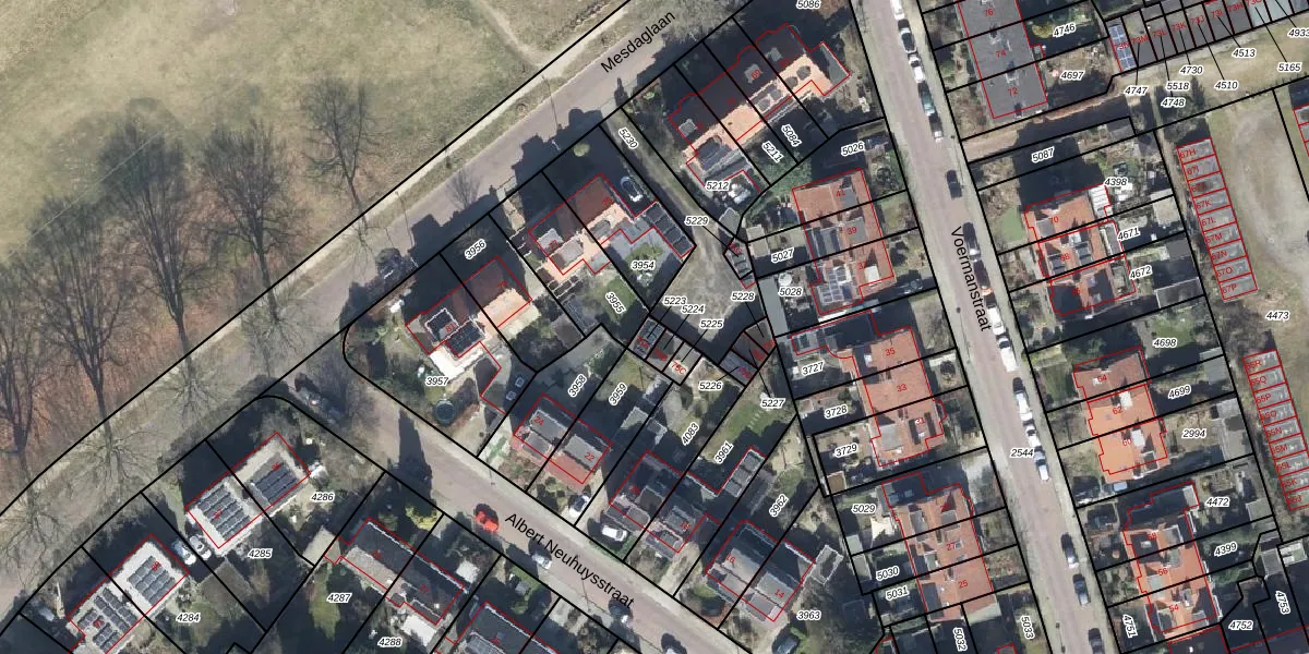 Gebruik de zoekbalk of klik op een perceel voor informatie over de adressen binnen dit perceel.