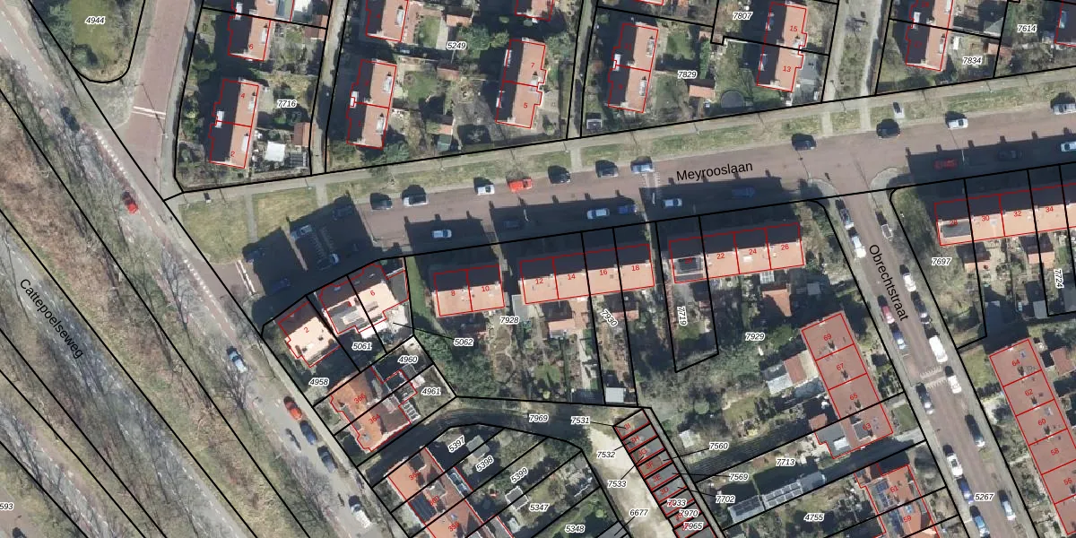 Het perceel waarop Meyrooslaan 12 staat heeft een oppervlakte van 940 m². Dit is een groot perceel. De perceeloppervlakte wordt geregistreerd door het Kadaster. Gedetailleerde informatie over de maten van dit perceel kunt u vinden in het rapport Kadastrale kaart met maatvoering van Meyrooslaan 12.