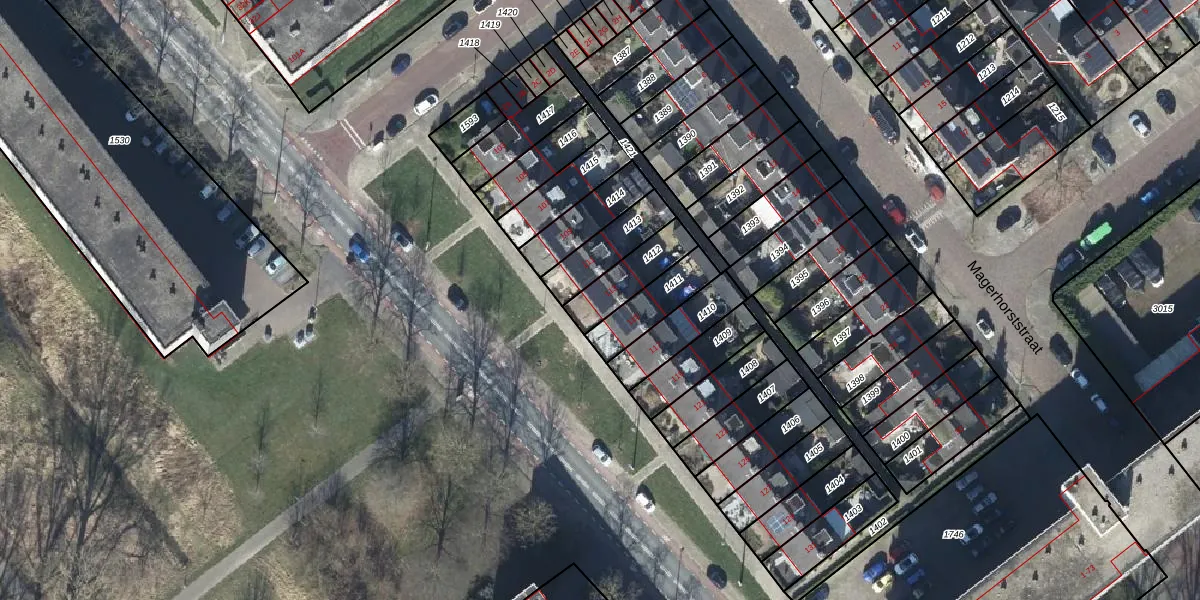 Gebruik de zoekbalk of klik op een perceel voor informatie over de adressen binnen dit perceel.