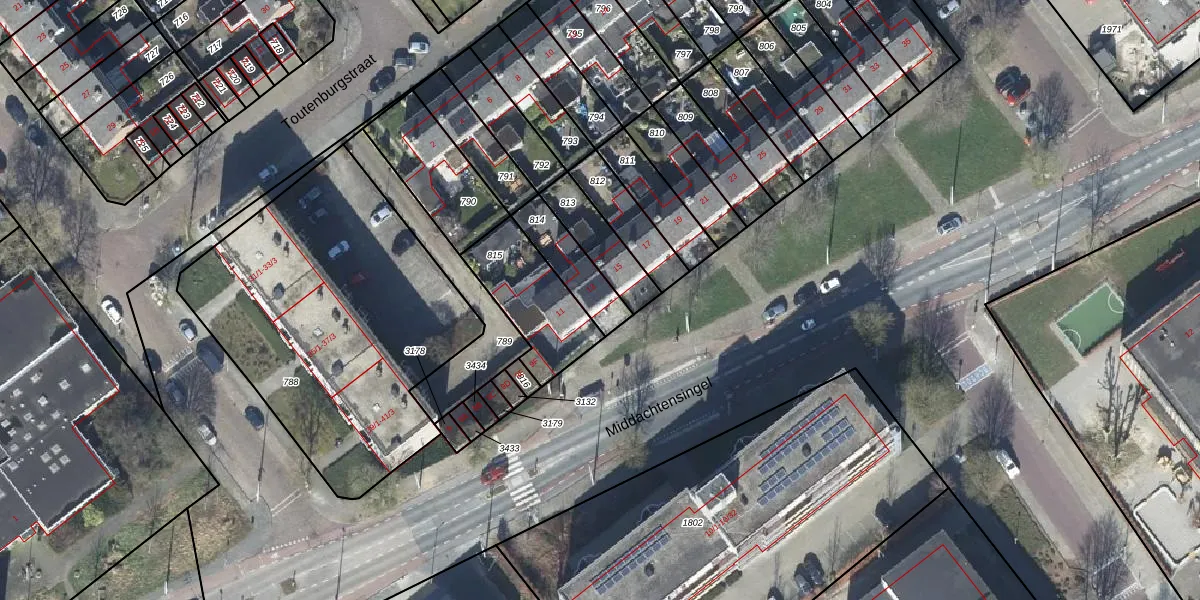 Gebruik de zoekbalk of klik op een perceel voor informatie over de adressen binnen dit perceel.