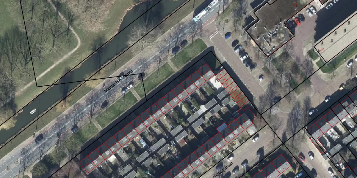 Het perceel waarop Middachtensingel 159 staat heeft een oppervlakte van 7366 m². Dit is een zeer groot perceel. De perceeloppervlakte wordt geregistreerd door het Kadaster. Gedetailleerde informatie over de maten van dit perceel kunt u vinden in het rapport Kadastrale kaart met maatvoering van Middachtensingel 159.