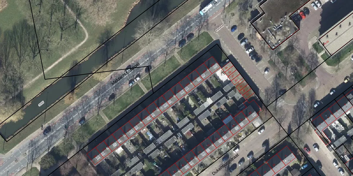 Het perceel waarop Middachtensingel 161 staat heeft een oppervlakte van 7366 m². Dit is een zeer groot perceel. De perceeloppervlakte wordt geregistreerd door het Kadaster. Gedetailleerde informatie over de maten van dit perceel kunt u vinden in het rapport Kadastrale kaart met maatvoering van Middachtensingel 161.