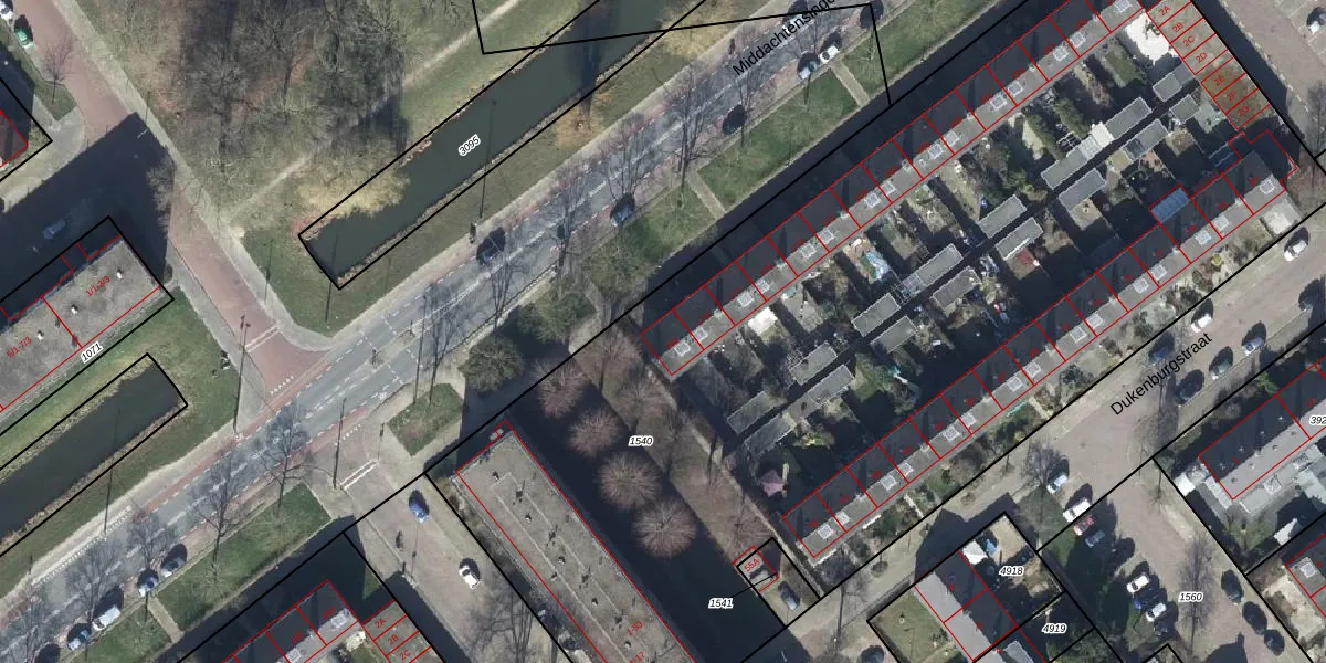 Het perceel waarop Middachtensingel 181 staat heeft een oppervlakte van 7366 m². Dit is een zeer groot perceel. De perceeloppervlakte wordt geregistreerd door het Kadaster. Gedetailleerde informatie over de maten van dit perceel kunt u vinden in het rapport Kadastrale kaart met maatvoering van Middachtensingel 181.