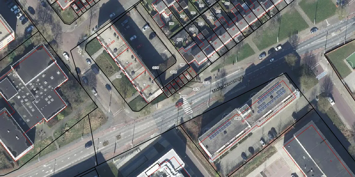 Het perceel waarop Middachtensingel 9-B staat heeft een oppervlakte van 18 m². Dit is een klein perceel. De perceeloppervlakte wordt geregistreerd door het Kadaster. Gedetailleerde informatie over de maten van dit perceel kunt u vinden in het rapport Kadastrale kaart met maatvoering van Middachtensingel 9-B.