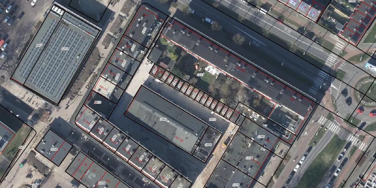 Het perceel waarop Middelgraaflaan 91 staat heeft een oppervlakte van 19 m². Dit is een klein perceel. De perceeloppervlakte wordt geregistreerd door het Kadaster. Gedetailleerde informatie over de maten van dit perceel kunt u vinden in het rapport Kadastrale kaart met maatvoering van Middelgraaflaan 91.