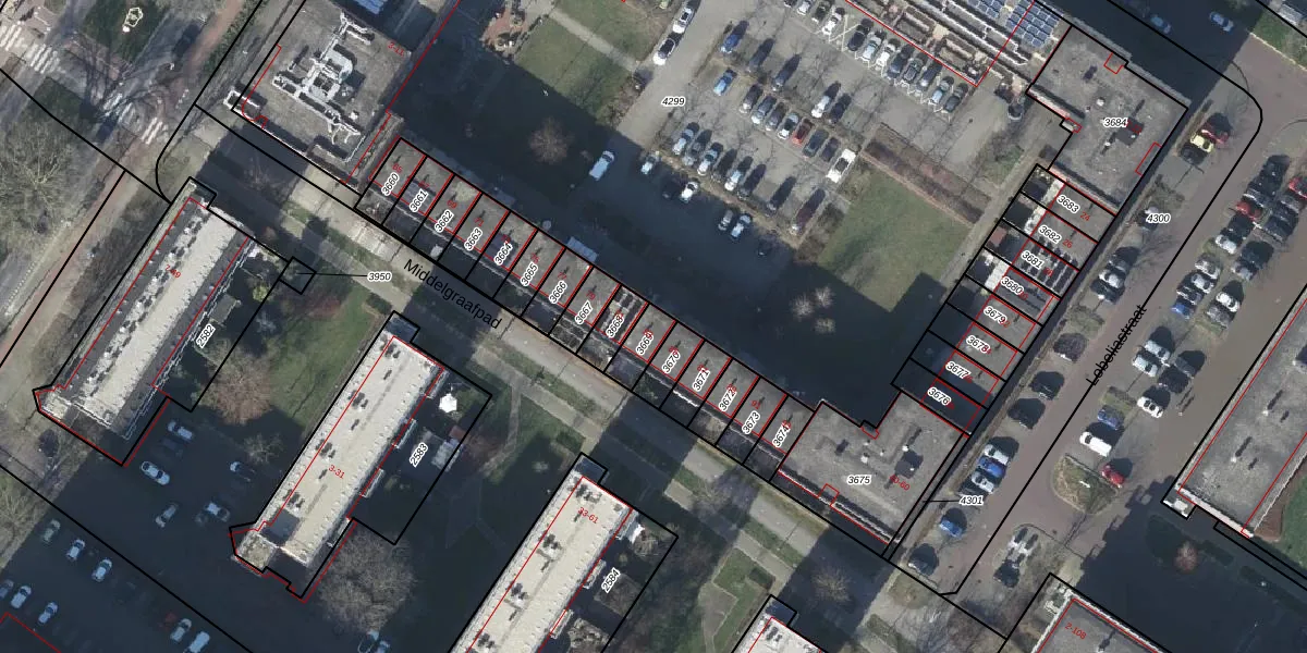 Het perceel waarop Middelgraafpad 83 staat heeft een oppervlakte van 66 m². Dit is een klein perceel. De perceeloppervlakte wordt geregistreerd door het Kadaster. Gedetailleerde informatie over de maten van dit perceel kunt u vinden in het rapport Kadastrale kaart met maatvoering van Middelgraafpad 83.