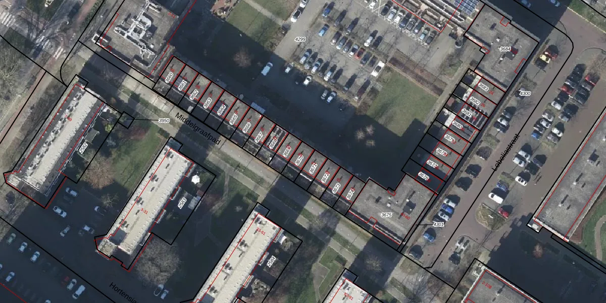 Het perceel waarop Middelgraafpad 85 staat heeft een oppervlakte van 66 m². Dit is een klein perceel. De perceeloppervlakte wordt geregistreerd door het Kadaster. Gedetailleerde informatie over de maten van dit perceel kunt u vinden in het rapport Kadastrale kaart met maatvoering van Middelgraafpad 85.
