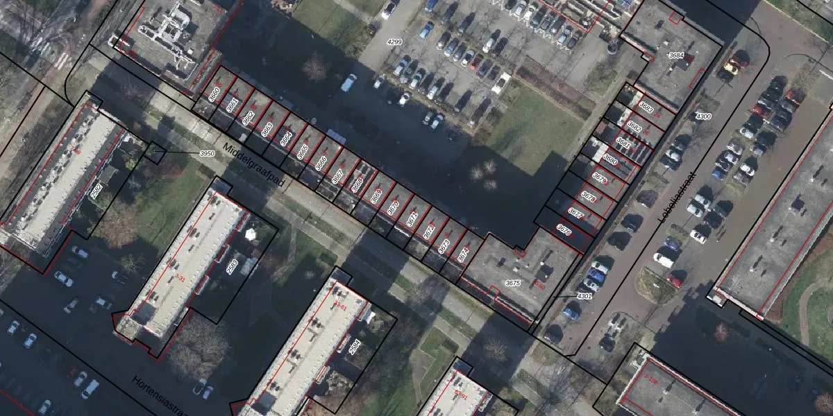 Het perceel waarop Middelgraafpad 87 staat heeft een oppervlakte van 66 m². Dit is een klein perceel. De perceeloppervlakte wordt geregistreerd door het Kadaster. Gedetailleerde informatie over de maten van dit perceel kunt u vinden in het rapport Kadastrale kaart met maatvoering van Middelgraafpad 87.