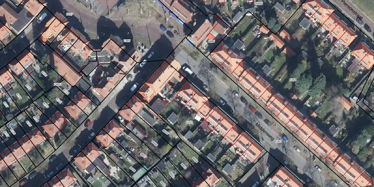 Het perceel waarop Middenweg 55 staat heeft een oppervlakte van 1850 m². Dit is een zeer groot perceel. De perceeloppervlakte wordt geregistreerd door het Kadaster. Gedetailleerde informatie over de maten van dit perceel kunt u vinden in het rapport Kadastrale kaart met maatvoering van Middenweg 55.