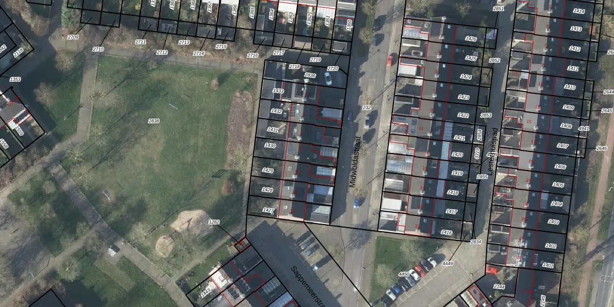 Gebruik de zoekbalk of klik op een perceel voor informatie over de adressen binnen dit perceel.