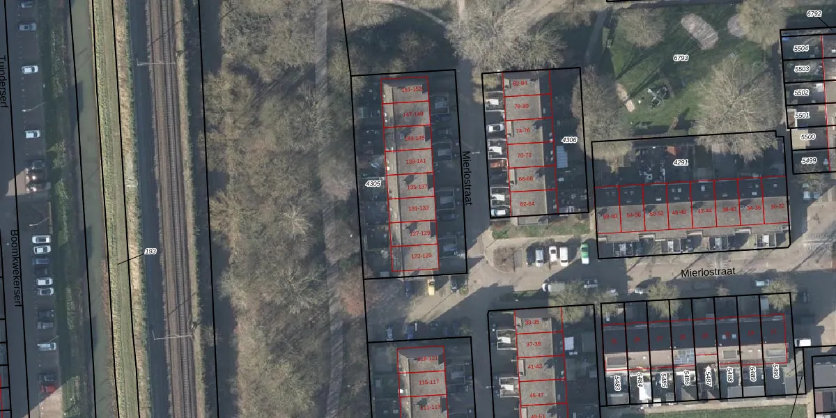 Het perceel waarop Mierlostraat 133 staat heeft een oppervlakte van 1203 m². Dit is een zeer groot perceel. De perceeloppervlakte wordt geregistreerd door het Kadaster. Gedetailleerde informatie over de maten van dit perceel kunt u vinden in het rapport Kadastrale kaart met maatvoering van Mierlostraat 133.