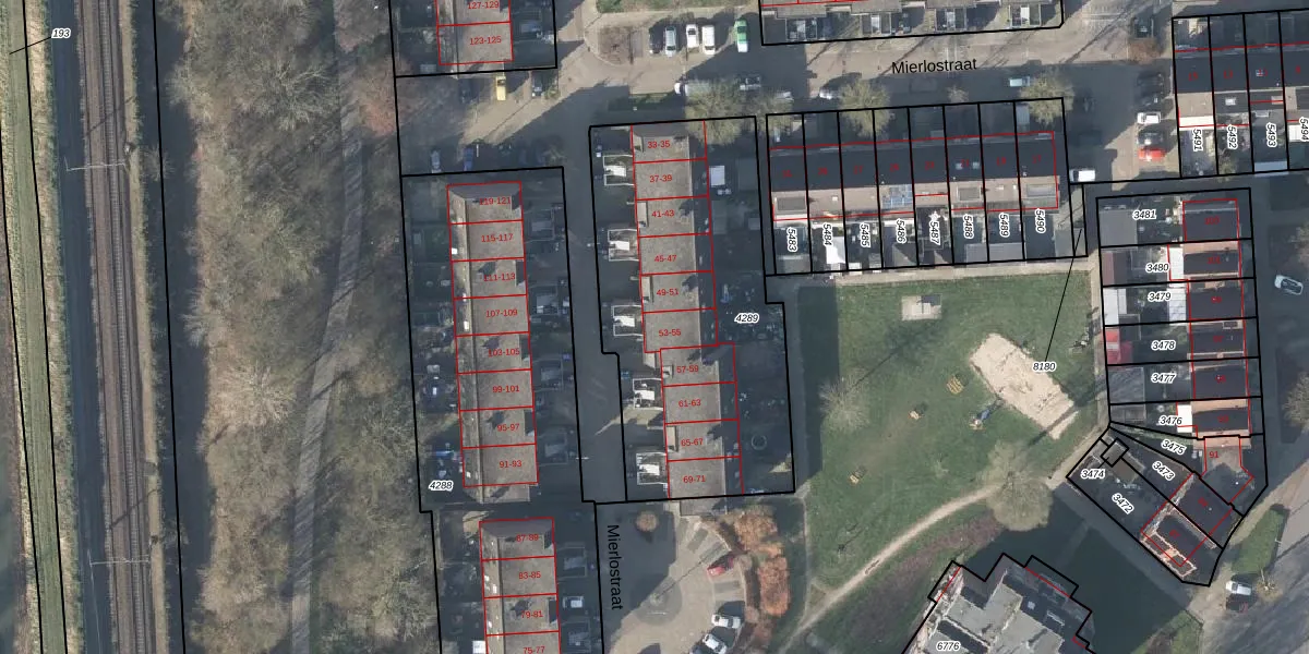 Het perceel waarop Mierlostraat 55 staat heeft een oppervlakte van 1488 m². Dit is een zeer groot perceel. De perceeloppervlakte wordt geregistreerd door het Kadaster. Gedetailleerde informatie over de maten van dit perceel kunt u vinden in het rapport Kadastrale kaart met maatvoering van Mierlostraat 55.