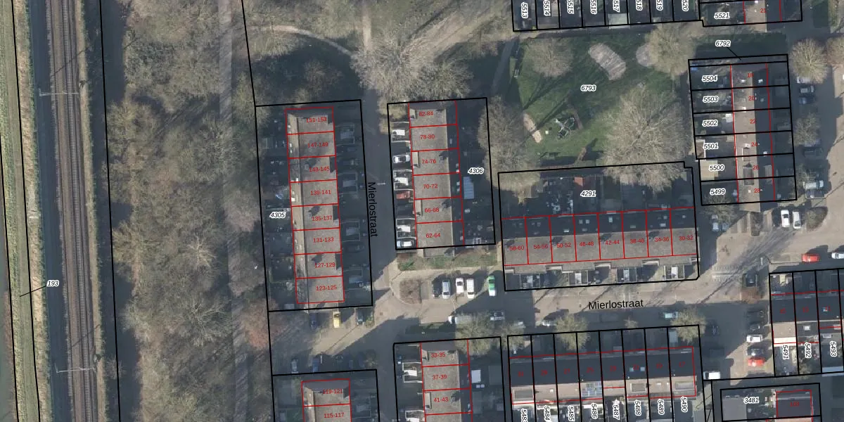 Het perceel waarop Mierlostraat 68 staat heeft een oppervlakte van 814 m². Dit is een groot perceel. De perceeloppervlakte wordt geregistreerd door het Kadaster. Gedetailleerde informatie over de maten van dit perceel kunt u vinden in het rapport Kadastrale kaart met maatvoering van Mierlostraat 68.