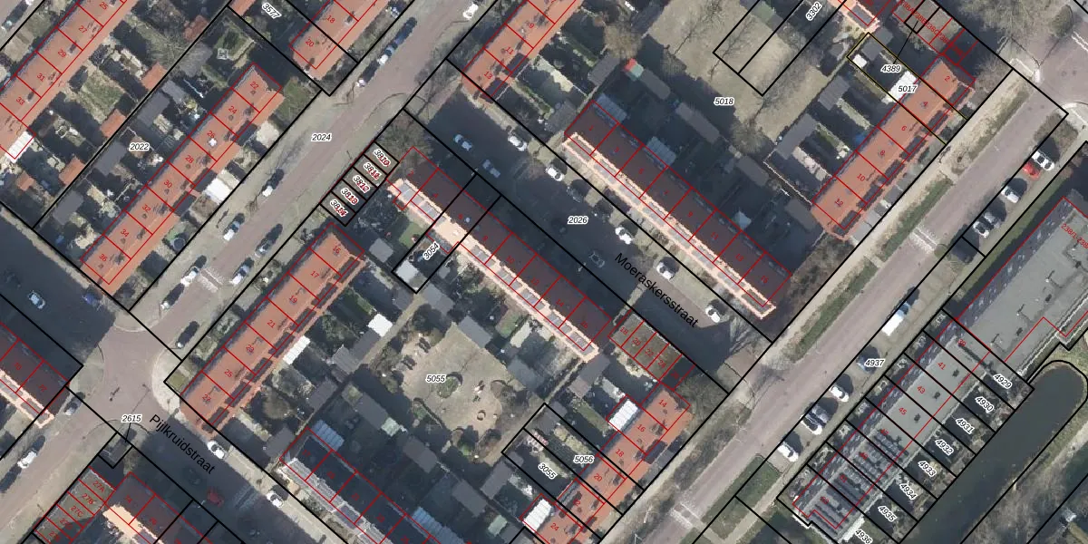 Het perceel waarop Moeraskersstraat 12 staat heeft een oppervlakte van 4515 m². Dit is een zeer groot perceel. De perceeloppervlakte wordt geregistreerd door het Kadaster. Gedetailleerde informatie over de maten van dit perceel kunt u vinden in het rapport Kadastrale kaart met maatvoering van Moeraskersstraat 12.
