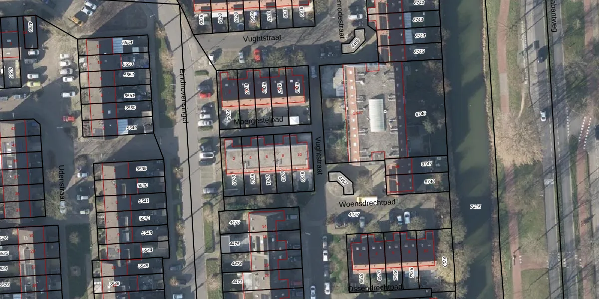 Gebruik de zoekbalk of klik op een perceel voor informatie over de adressen binnen dit perceel.