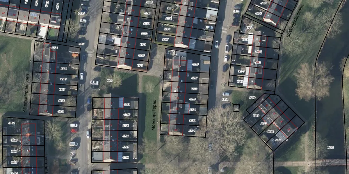 Gebruik de zoekbalk of klik op een perceel voor informatie over de adressen binnen dit perceel.