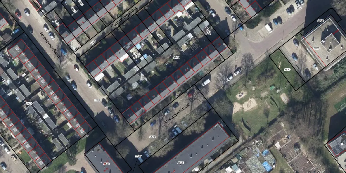 Het perceel waarop Molecatenstraat 11 staat heeft een oppervlakte van 3366 m². Dit is een zeer groot perceel. De perceeloppervlakte wordt geregistreerd door het Kadaster. Gedetailleerde informatie over de maten van dit perceel kunt u vinden in het rapport Kadastrale kaart met maatvoering van Molecatenstraat 11.