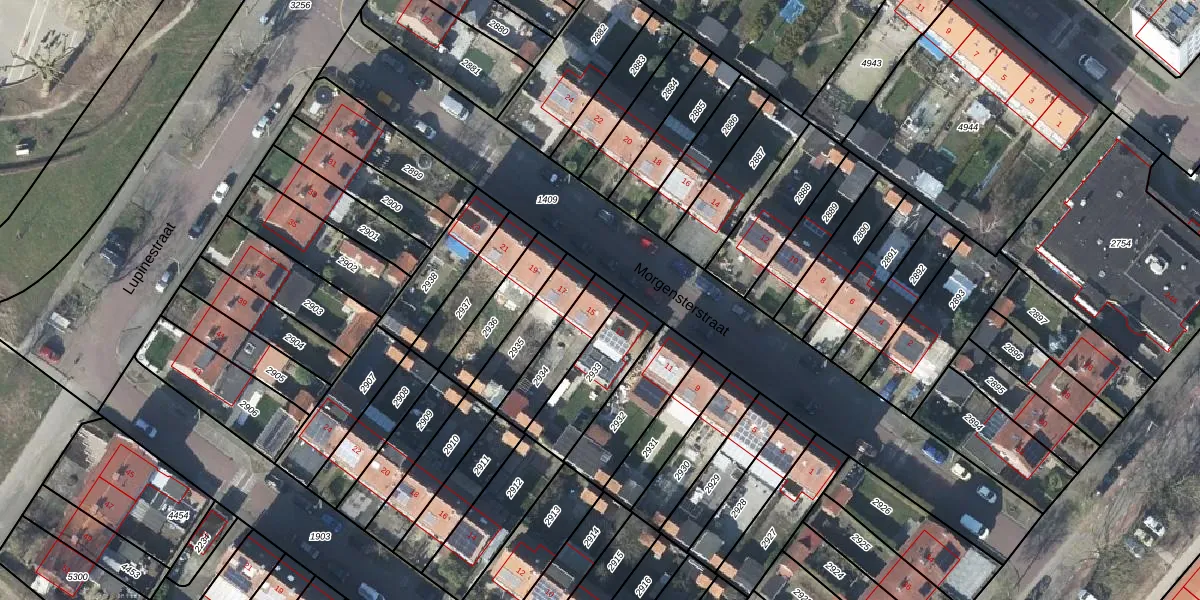 Het perceel waarop Morgensterstraat 15 staat heeft een oppervlakte van 169 m². Dit is een middelgroot perceel. De perceeloppervlakte wordt geregistreerd door het Kadaster. Gedetailleerde informatie over de maten van dit perceel kunt u vinden in het rapport Kadastrale kaart met maatvoering van Morgensterstraat 15.