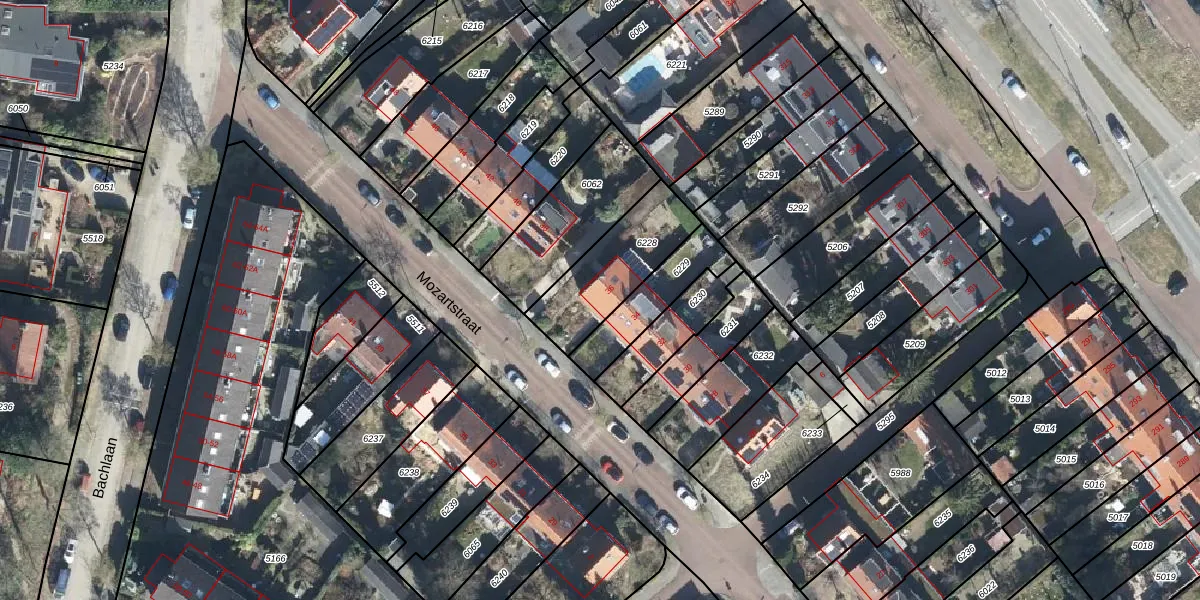 Het perceel waarop Mozartstraat 36 staat heeft een oppervlakte van 324 m². Dit is een groot perceel. De perceeloppervlakte wordt geregistreerd door het Kadaster. Gedetailleerde informatie over de maten van dit perceel kunt u vinden in het rapport Kadastrale kaart met maatvoering van Mozartstraat 36.
