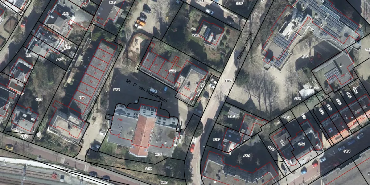 Het perceel waarop Mr. D. van Ruijvenpad 55 staat heeft een oppervlakte van 760 m². Dit is een groot perceel. De perceeloppervlakte wordt geregistreerd door het Kadaster. Gedetailleerde informatie over de maten van dit perceel kunt u vinden in het rapport Kadastrale kaart met maatvoering van Mr. D. van Ruijvenpad 55.