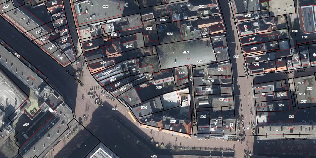 Het perceel waarop Muntsteeg 7 staat heeft een oppervlakte van 430 m². Dit is een groot perceel. De perceeloppervlakte wordt geregistreerd door het Kadaster. Gedetailleerde informatie over de maten van dit perceel kunt u vinden in het rapport Kadastrale kaart met maatvoering van Muntsteeg 7.