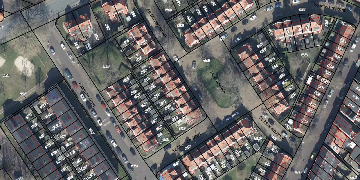 Het perceel waarop Mussenplein 14 staat heeft een oppervlakte van 105 m². Dit is een middelgroot perceel. De perceeloppervlakte wordt geregistreerd door het Kadaster. Gedetailleerde informatie over de maten van dit perceel kunt u vinden in het rapport Kadastrale kaart met maatvoering van Mussenplein 14.