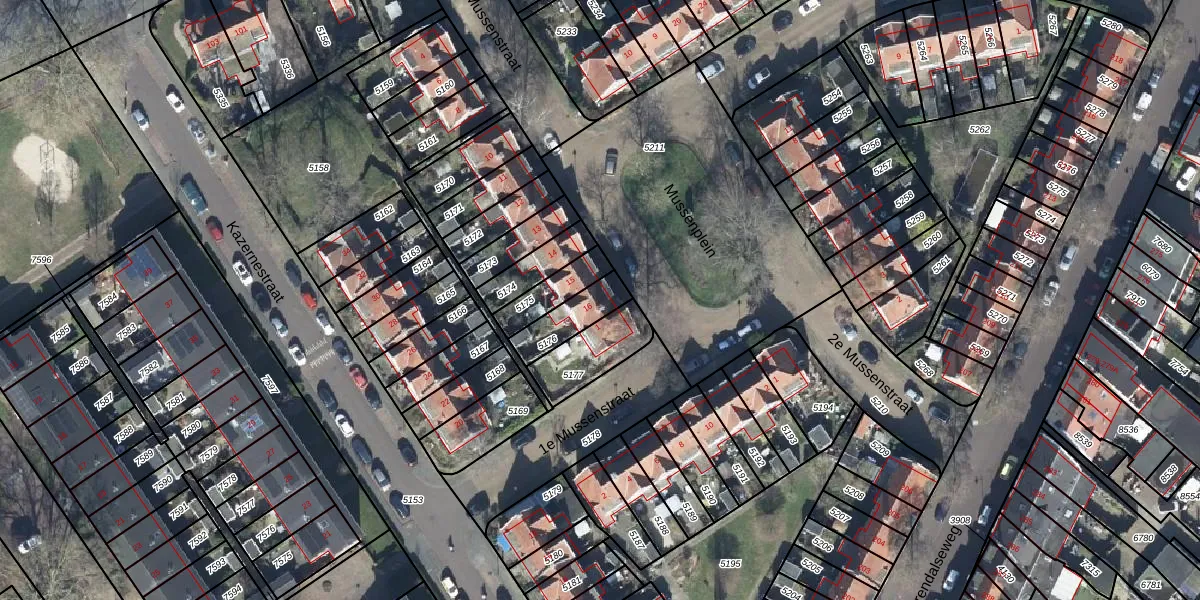 Mussenplein 16 is gelegen op kadastraal perceel AHM01R5176. Deze kadastrale aanduiding is uniek en wordt gebruikt door het Kadaster om eigendomsrechten en andere zakelijke rechten vast te leggen. Het perceel maakt onderdeel uit van de kadastrale gemeente Arnhem.
